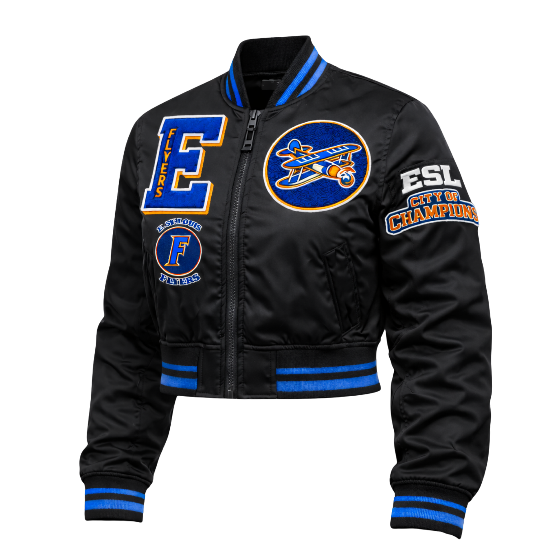 The black satin finish, bold Flyers patches, and structured cropped fit give this bomber quiet dominance. It doesn’t chase attention. It holds it — just like Flyers leadership has always done.
