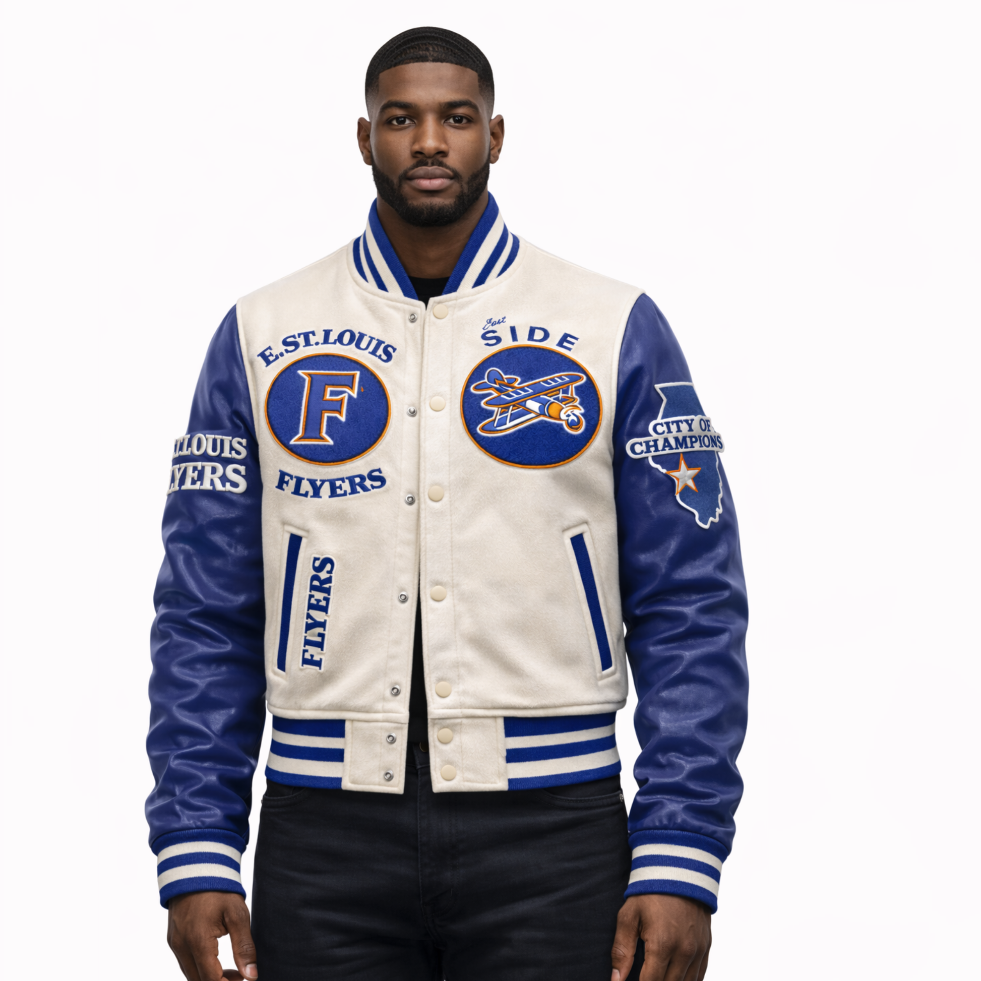 The Standard is the definition of Flyers basketball tradition. This men’s letterman jacket honors legacy — from packed gyms and championship expectations to leadership that extends beyond the court.